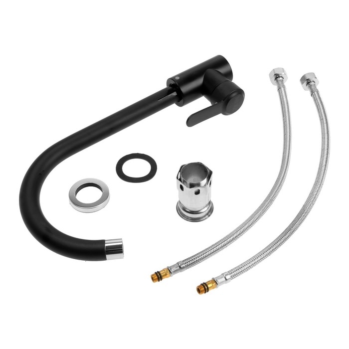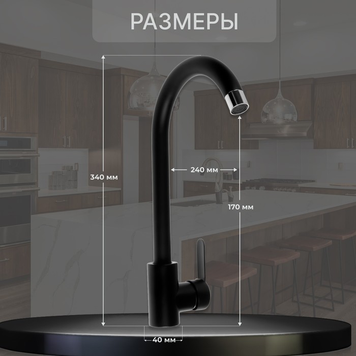 Смеситель для кухни ZEIN Z2388, картридж керамика 40 мм, нержавеющая сталь, камень-черный