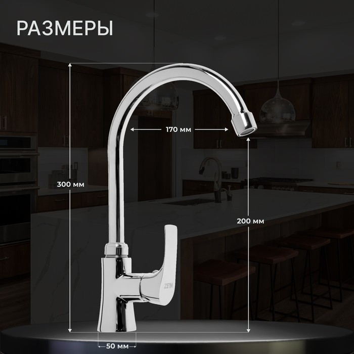 Смеситель для кухни ZEIN Z2483, картридж керамика 35 мм, высокий излив, хром
