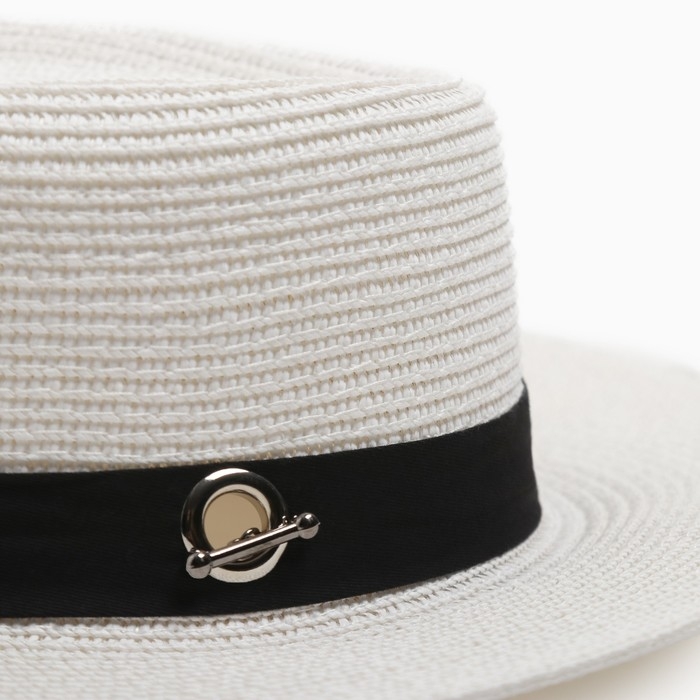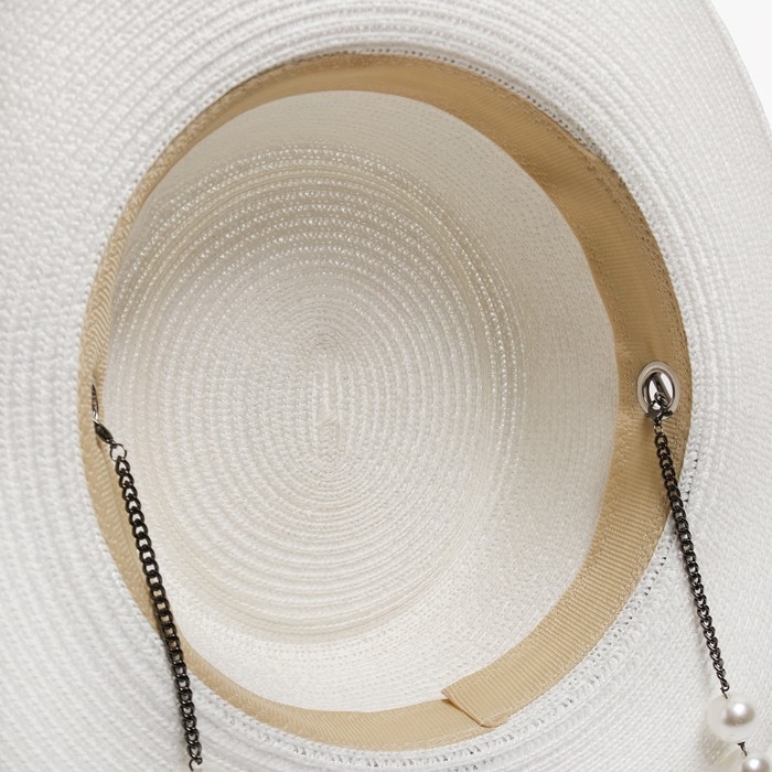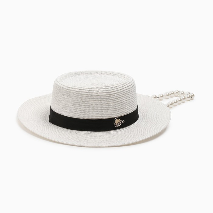 Шляпа женская с бусинами MINAKU цвет молочный, р-р 56-58
