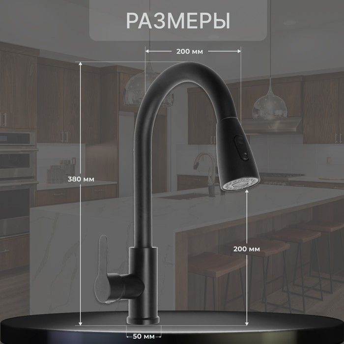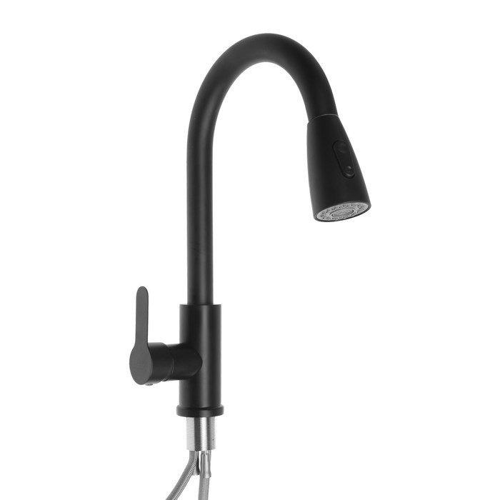 Смеситель для кухни ZEIN Z2941, выдвижная лейка 2 режима, картридж 35мм, нерж. сталь, черный