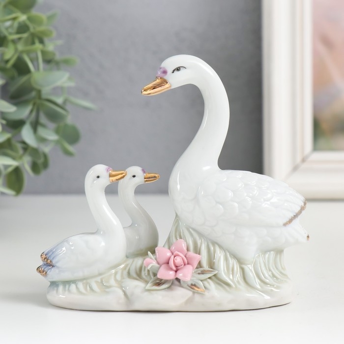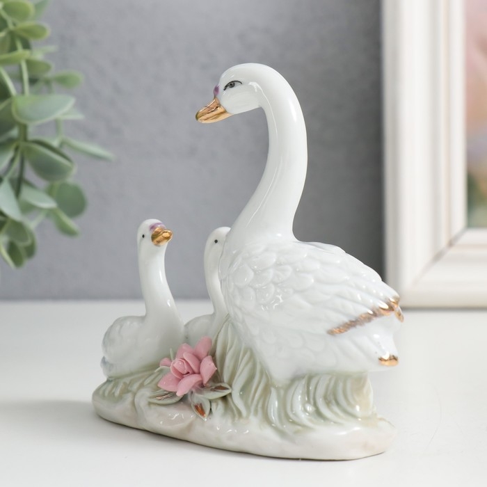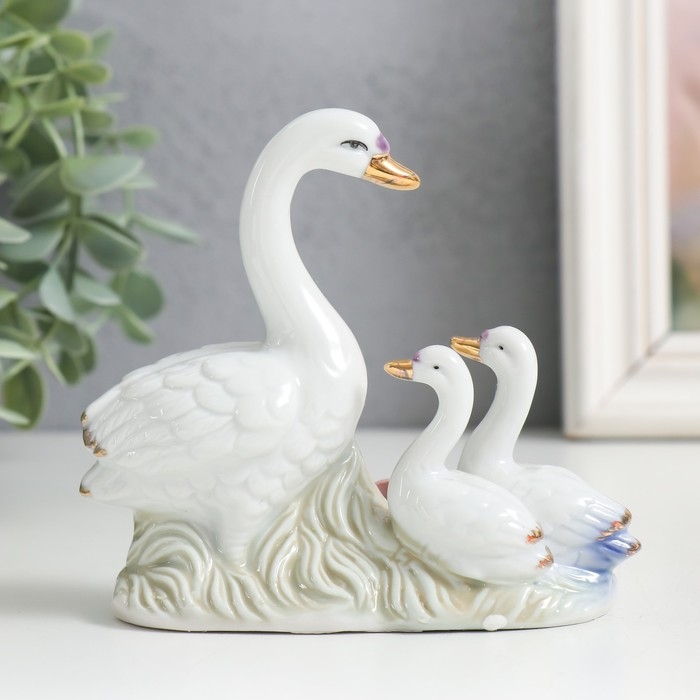 Сувенир керамика "Лебедь с детками на полянке" 10 см