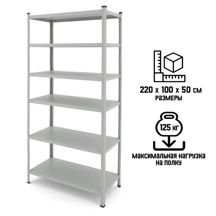 Стеллаж складской Everest-150, металл, 6 полок, нагрузка на полку - 125 кг, 220×100×50 см, серый