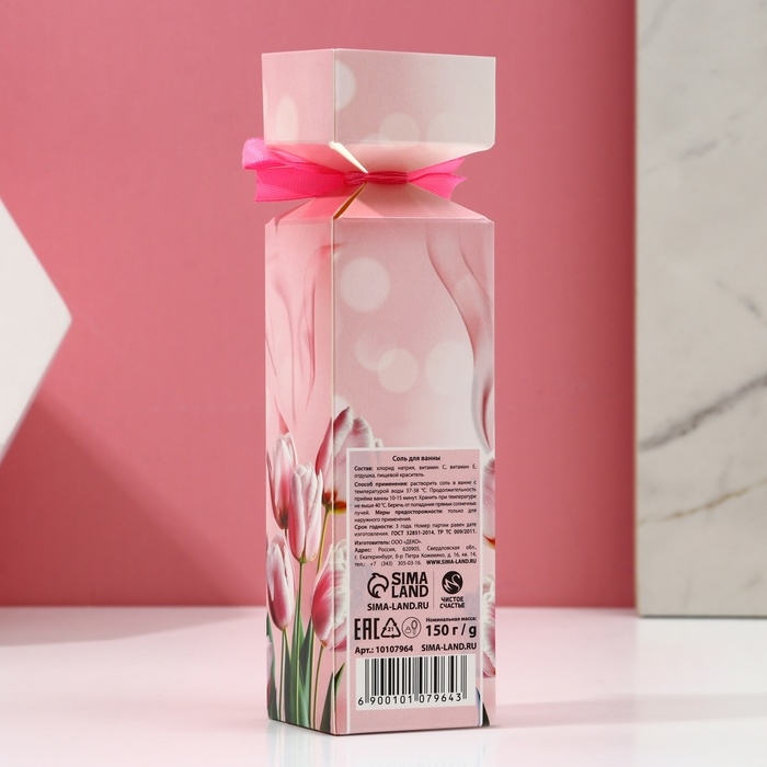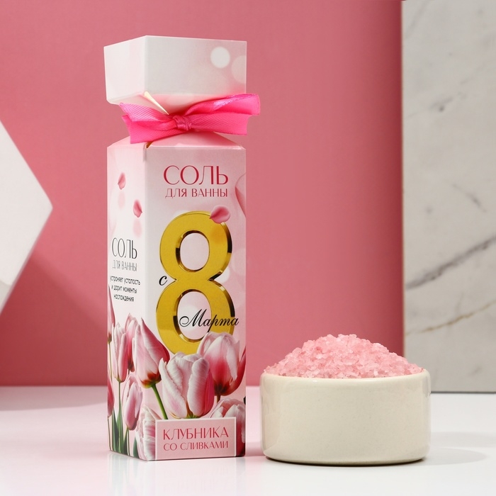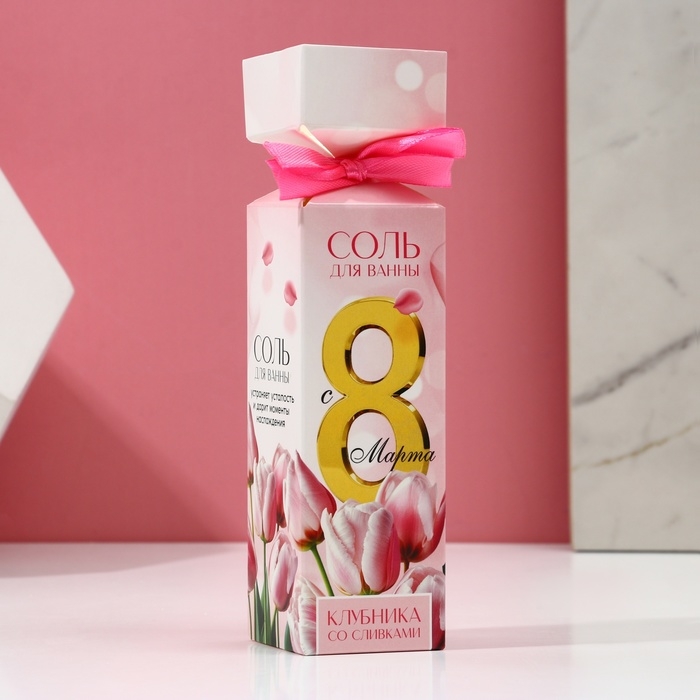 Соль для ванны «С 8 Марта!», 150 г, аромат клубники со сливками, ЧИСТОЕ СЧАСТЬЕ