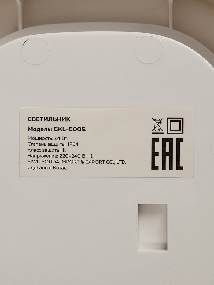 Светильник светодиодный, 24 Вт, IP54, 4000К, 220 В, овал, белый