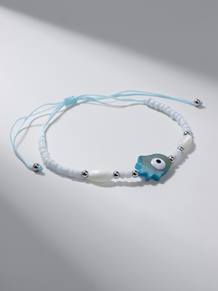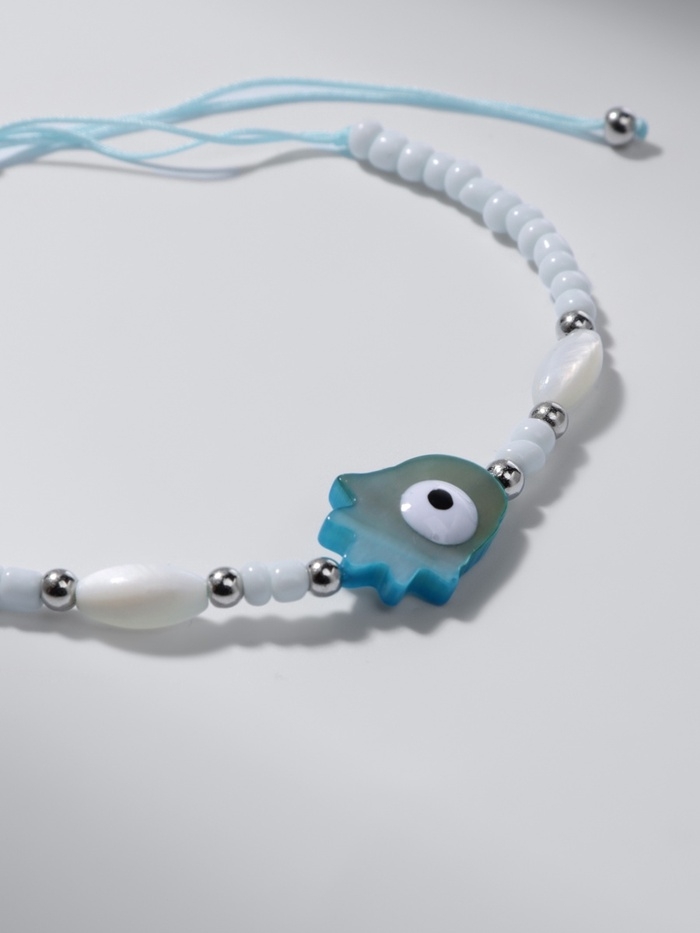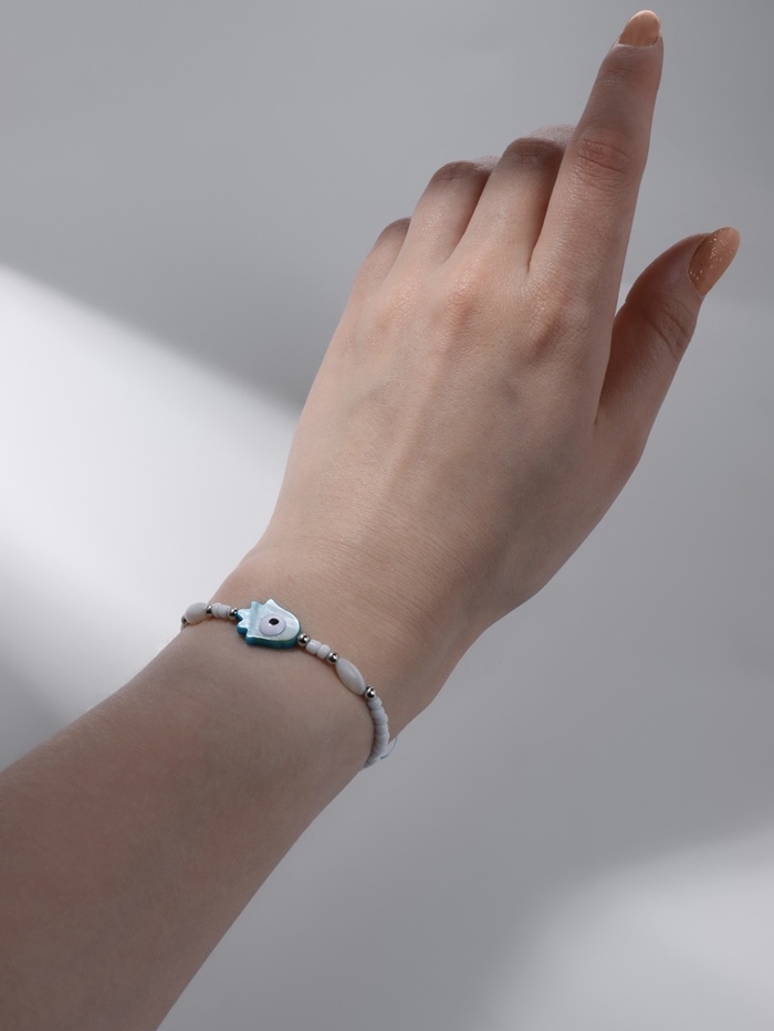 Браслет-оберег «Глазик» на нити, рука счастья Хамса, голубой в серебре