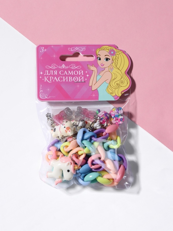 Набор "Выбражулька" 6 пр.: цепочка единорог. 3 пары клипс кот, мишки, бабочки, брелок мишка 108411