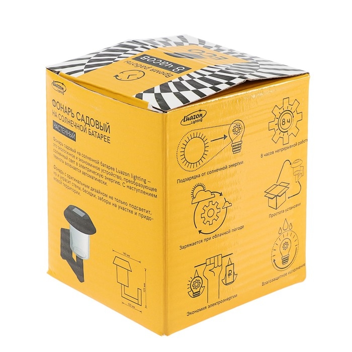 Садовый светильник на солнечной батарее, накладной, 8 × 12 × 5 см, 1 LED, свечение тёплое белое