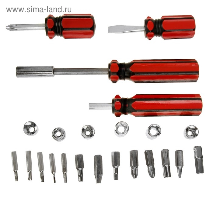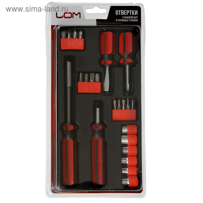Отвертки с набором бит и головок ЛОМ, пластиковые рукоятки, 23 предмета