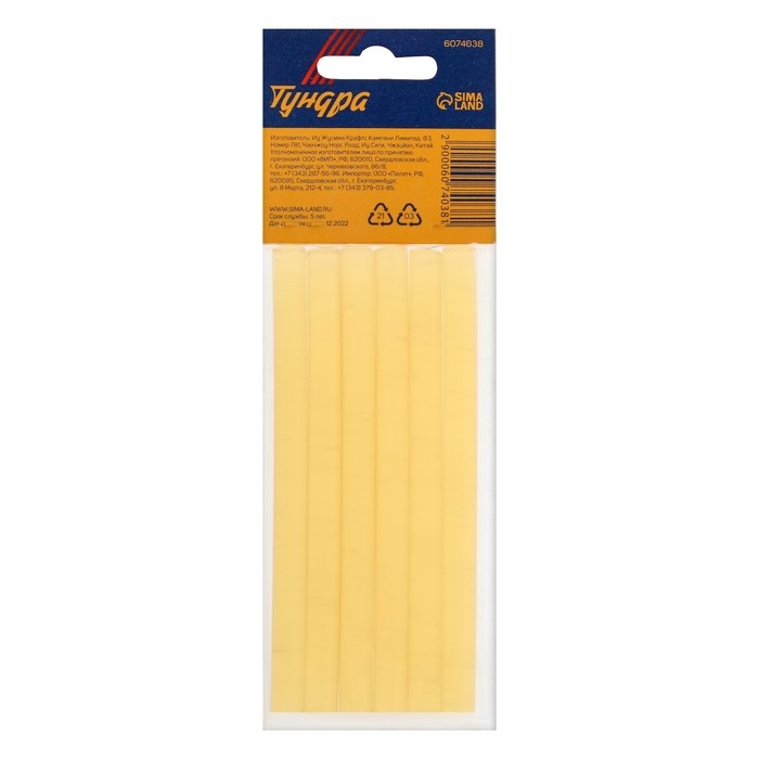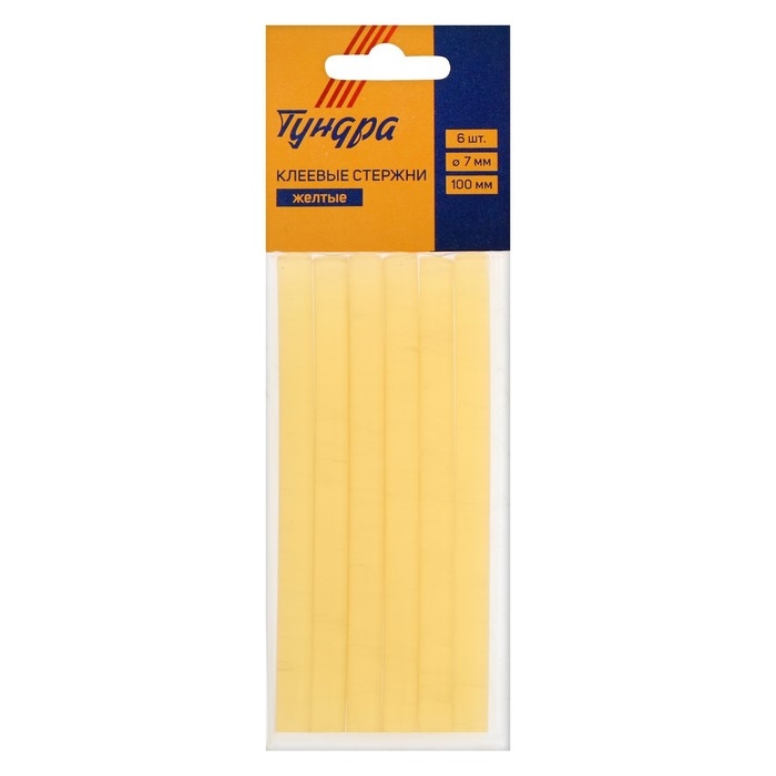 Клеевые стержни ТУНДРА, 7 х 100 мм, желтые, 6 шт.