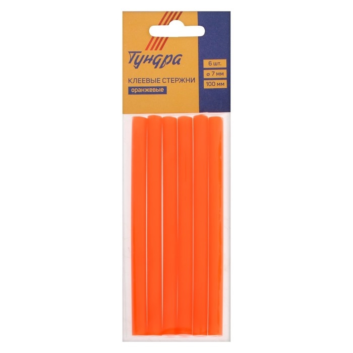 Клеевые стержни ТУНДРА, 7 х 100 мм, оранжевые, 6 шт.