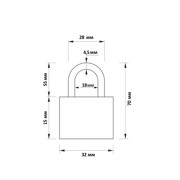 Замок навесной, тип 1, 32х70 мм, 3 ключа