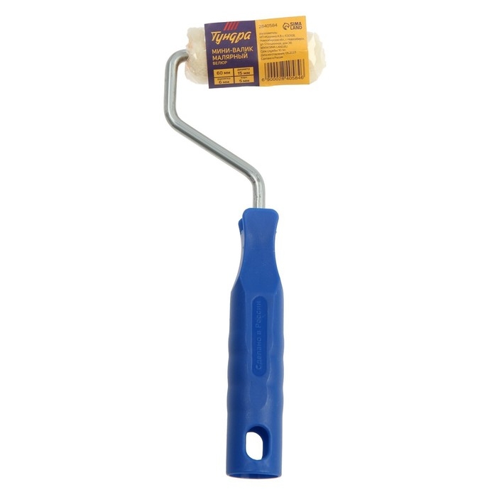 Мини-валик ТУНДРА, велюр, 60 мм, рукоятка d=6 мм, D=15 мм, ворс 5 мм