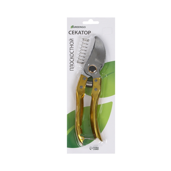 Секатор плоскостной, 8" (20 см), с металлическими ручками, с запасной пружиной, Greengo