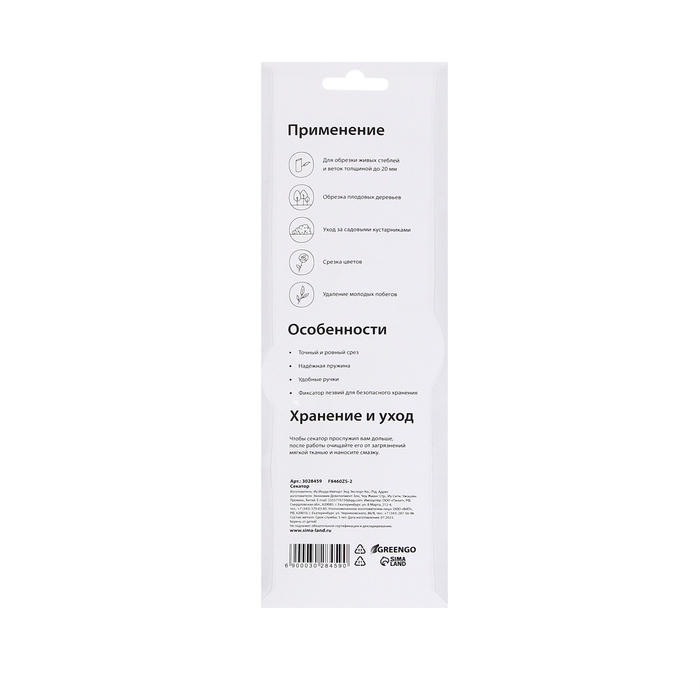 Секатор Greengo предназначен для прореживания нетолстых веток и формирования кроны деревьев и кустарников. Также используется при сборе винограда или при удалении усиков у клубники.