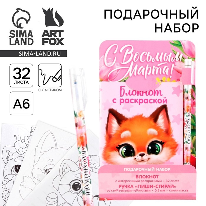 Подарочный набор блокнот А6, 32 листа и волшебная ручка «С 8 марта»