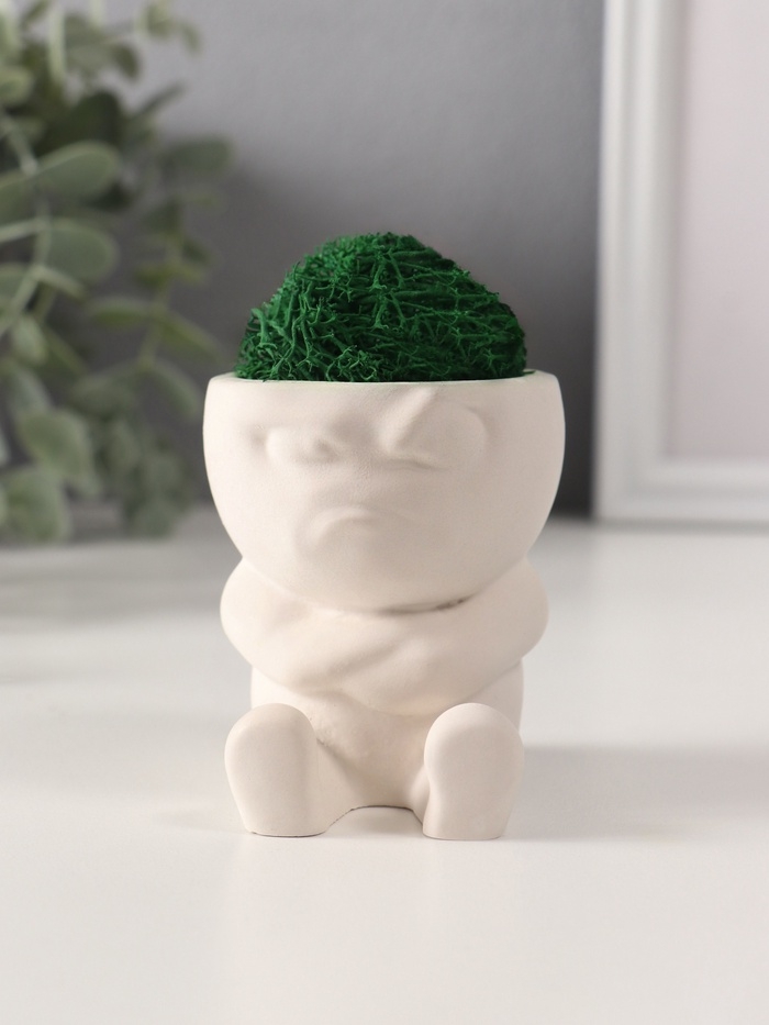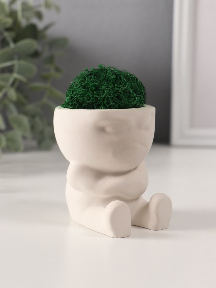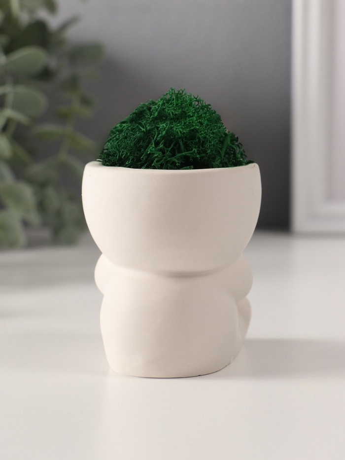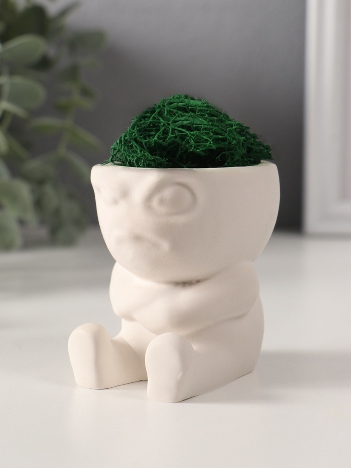 Кашпо бетонное "Мистер Зло" со мхом 7*6*6,5 см белый (мох зеленый стабилизированный)