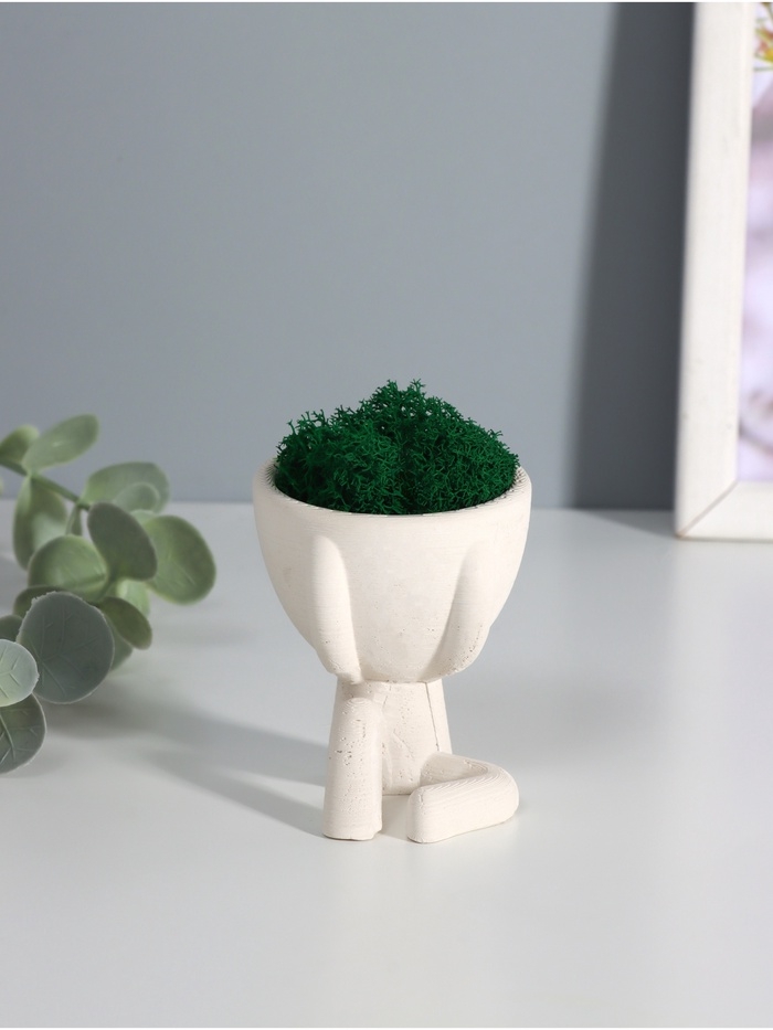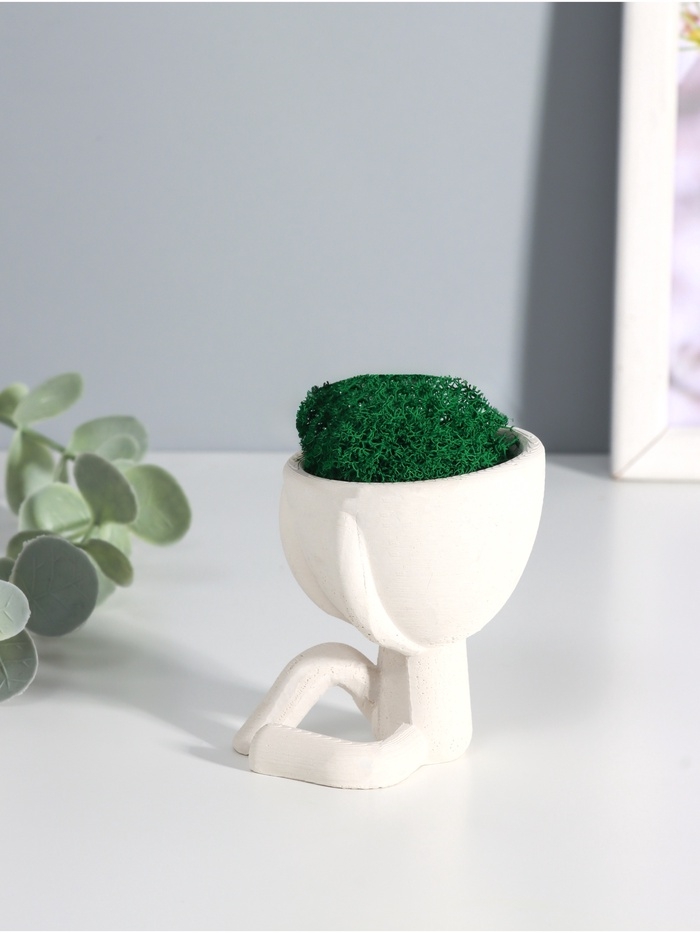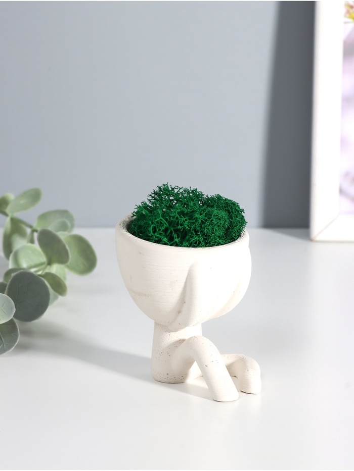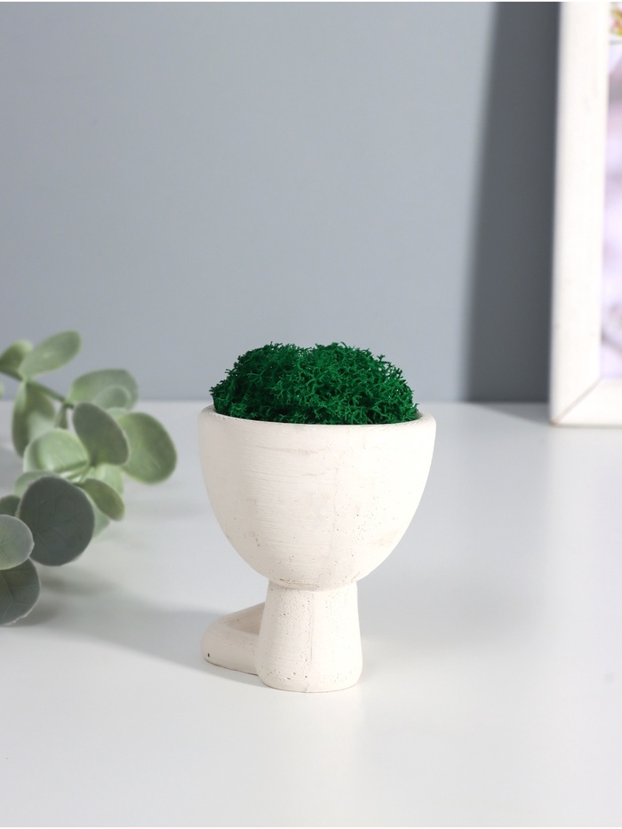 Кашпо бетонное "Мистер Грин" со мхом 6,7*6*6,5 см белый (мох зеленый стабилизированный)