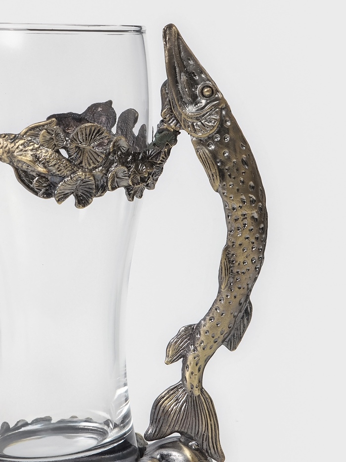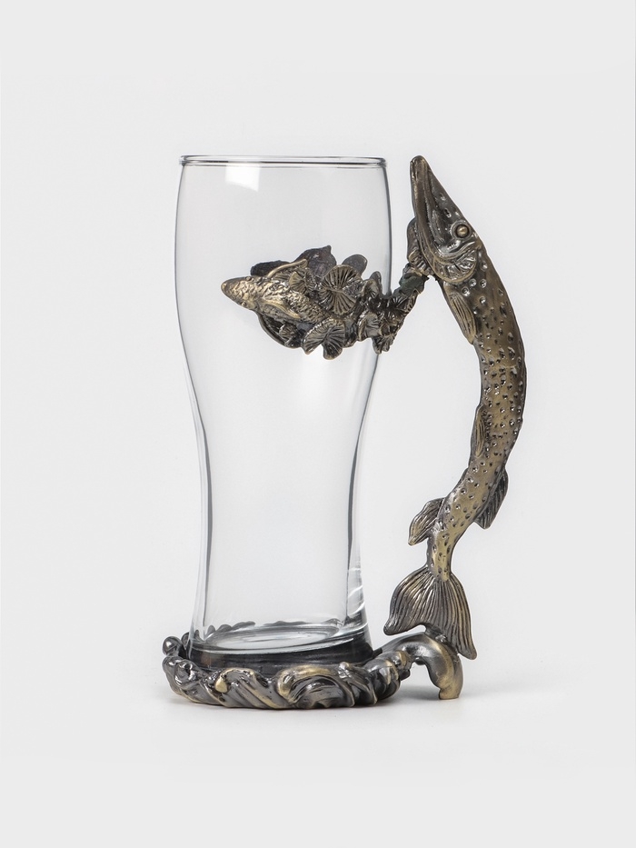 Пивной бокал 500 мл "Щука", подарочный, бронза