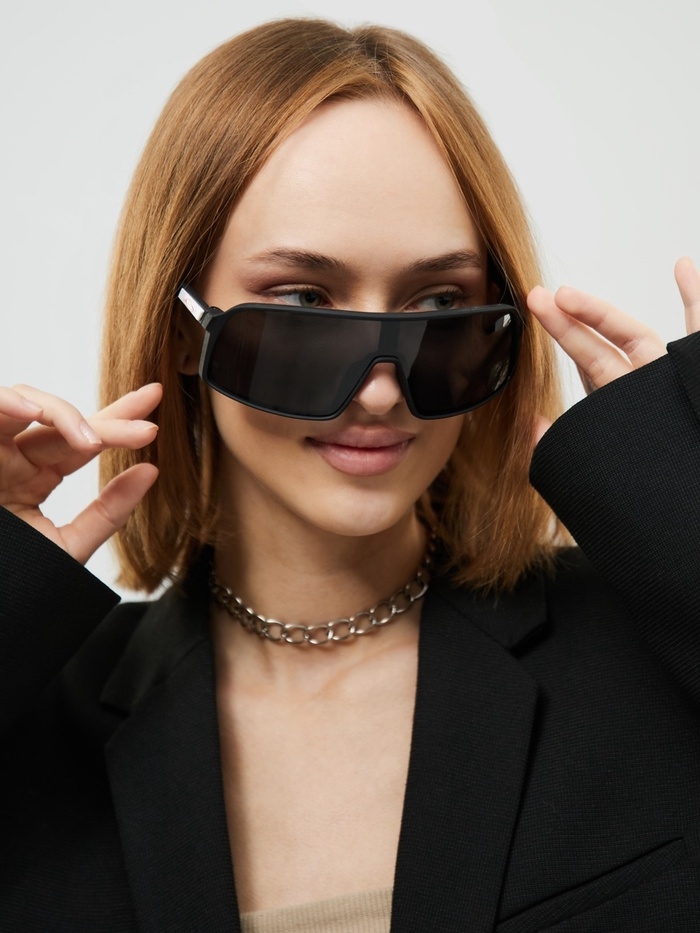 Очки солнцезащитные спортивные, uv 400, ширина 14.1 см, дужка 14.3 см, высота 5.3 см, черные 10807