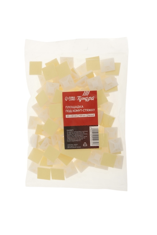 Площадка под хомут-стяжку ТУНДРА, 20х20 мм, цвет белый, 100 шт
