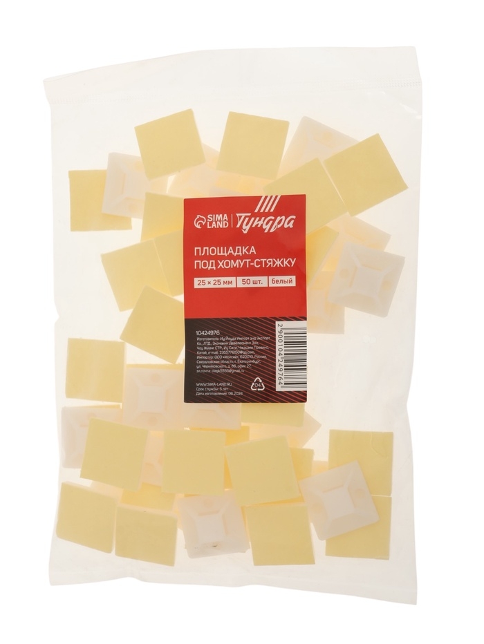 Площадка под хомут-стяжку ТУНДРА, 25х25 мм, цвет белый, 50 шт