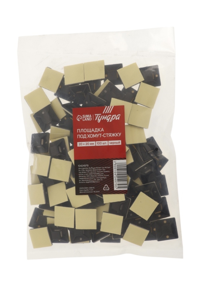Площадка под хомут-стяжку ТУНДРА, 20х20 мм, цвет черный, 100 шт