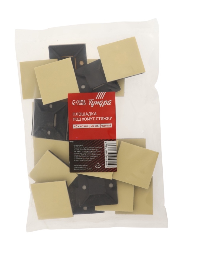 Площадка под хомут-стяжку ТУНДРА, 40х40 мм, цвет черный, 25 шт