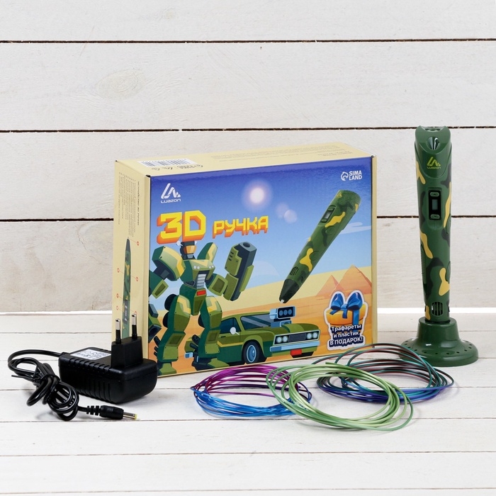 3D ручка Luazon, трафареты и 150 метров пластика комплекте, работа с ABS и PLA, хаки