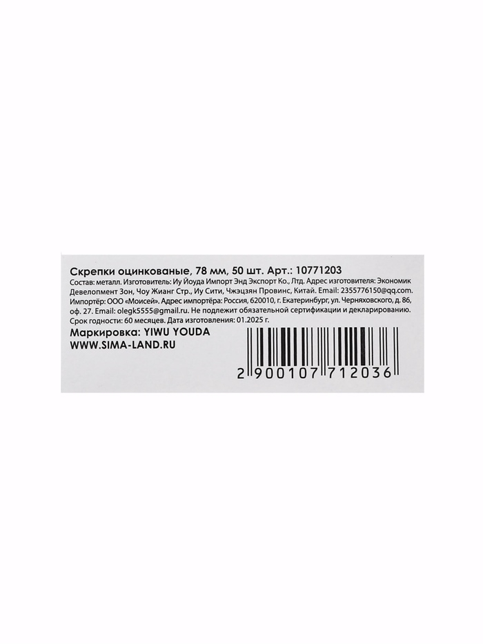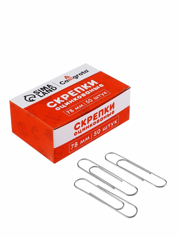 Скрепки 78мм оцинкованые в картонной коробке 50 штук