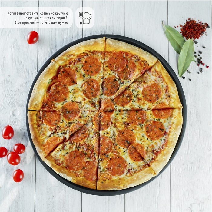 Форма для выпечки выполнена из углеродистой стали. Хотите приготовить идеально круглую вкусную пиццу или пирог? Этот предмет — то, что вам нужно.