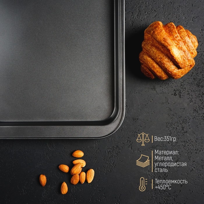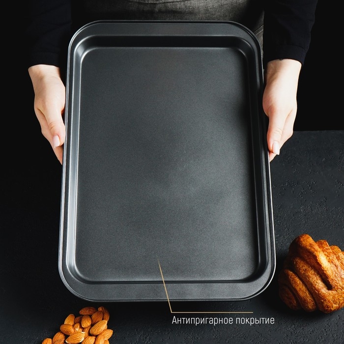 Противень Доляна «Жаклин. Прямоугольник», 25,7×37,5×2 см, антипригарное покрытие, цвет чёрный