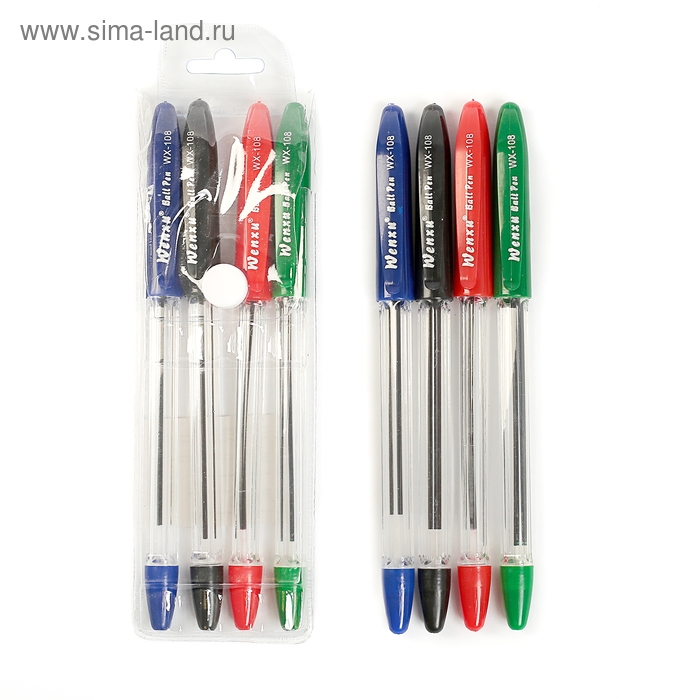 Набор ручек шариковых, 4 цвета, в блистере