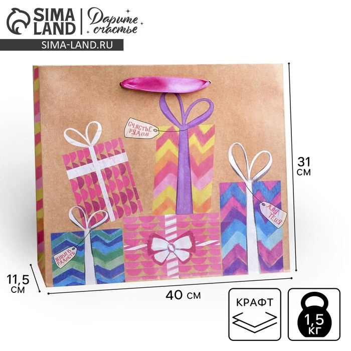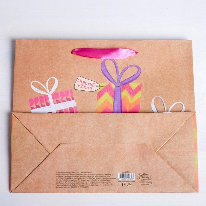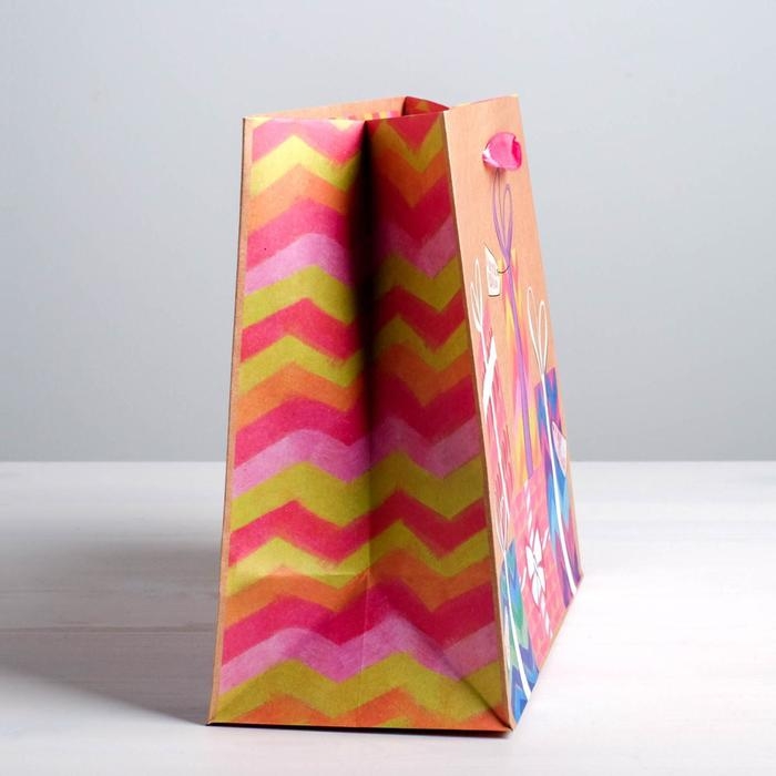Пакет подарочный крафтовый горизонтальный, упаковка, «Подарки!», L 31 х 40 х 9 см