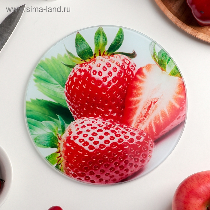 Доска разделочная стеклянная Доляна «Сладкая клубничка», d=20 см