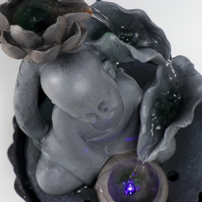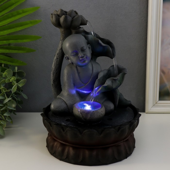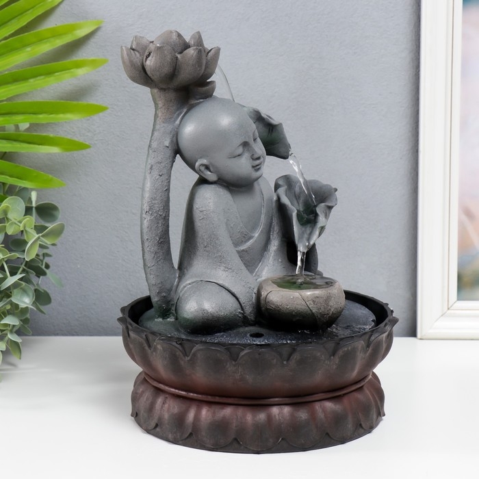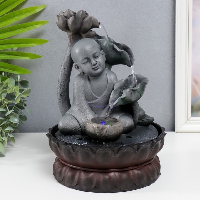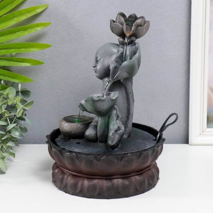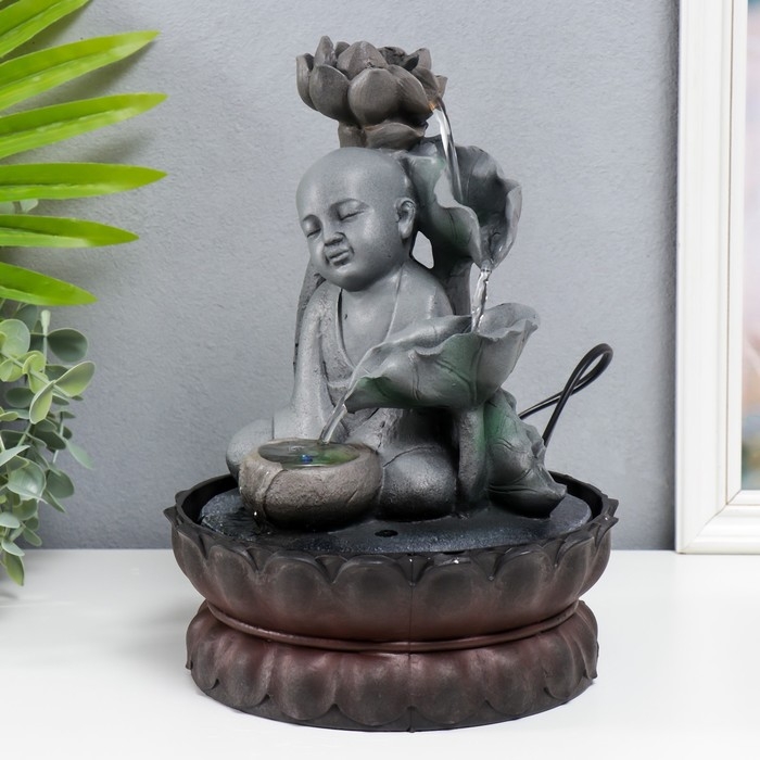 Фонтан настольный от сети, подсветка "Маленький будда с лотосом" серый 29х20х20 см