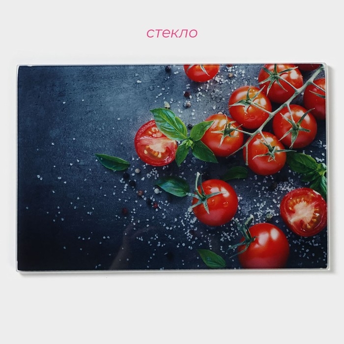 Доска разделочная стеклянная Доляна «Помидорки Черри», 30×20 см