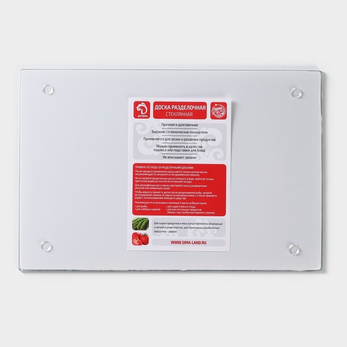 Стеклянная разделочная доска — это практичный аксессуар для нарезки продуктов, стильное украшение кухни и эффектная подставка для блюд. Стеклянная поверхность нейтрально относится к посторонним ароматам. Она не впитывает запахи и не поглощает влагу. Уход за изделием прост — достаточно промыть его под теплой водой и насухо вытереть салфеткой.