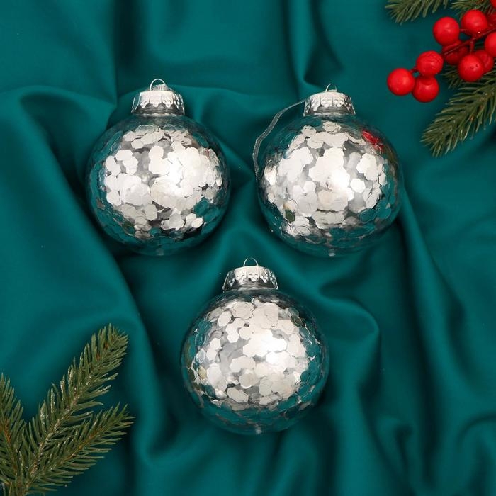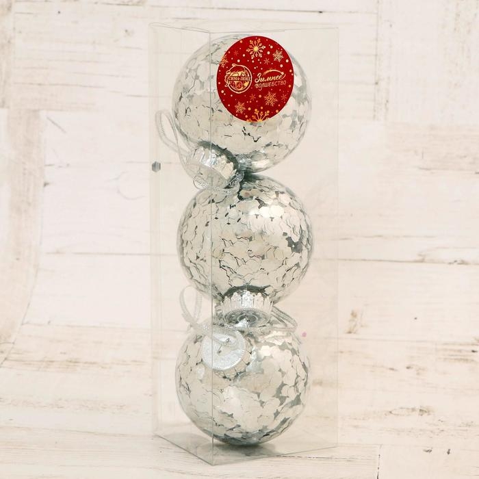 Набор шаров пластик d-8 см, 3 шт "Праздничное настроение круги" серебро