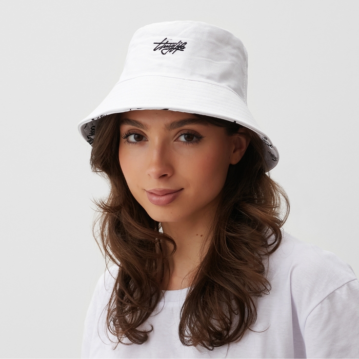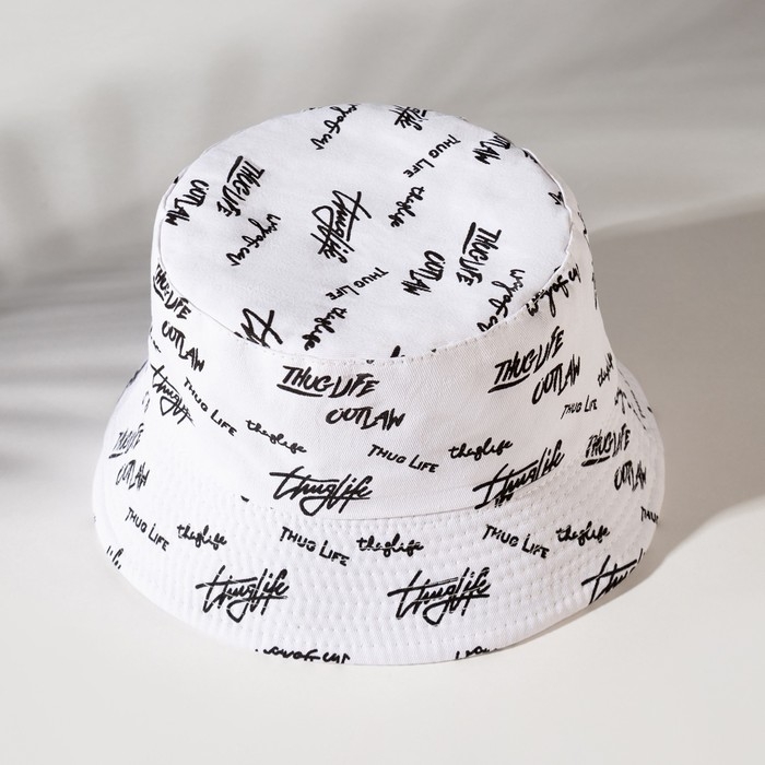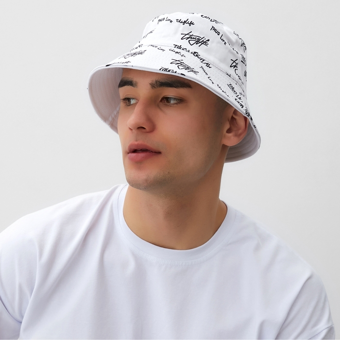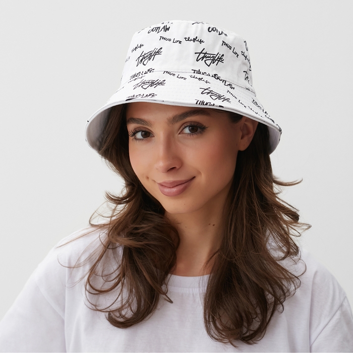 Панама двусторонняя MINAKU с надписями, цвет белый, размер 58