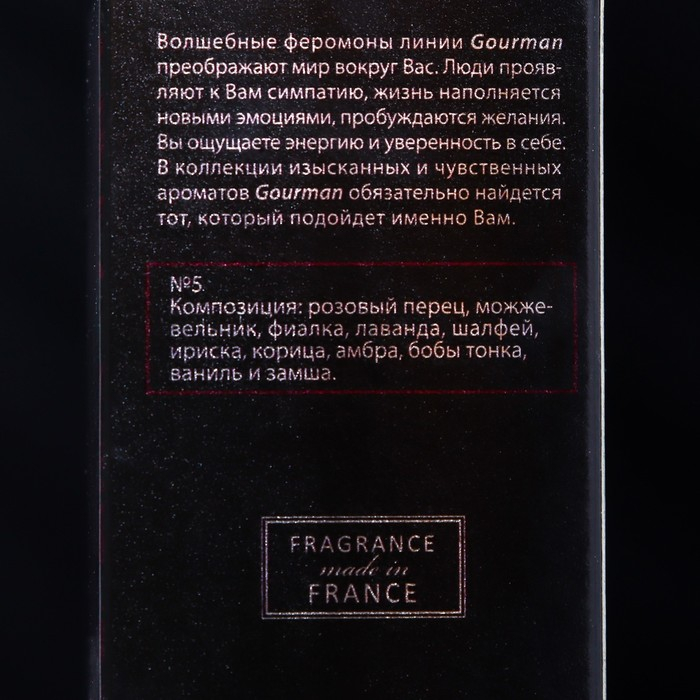 Волшебные феромоны лини Gourman преображают мир вокруг вас. Люди проявляют к вам симпатию, жизнь наполняется новыми эмоциями, пробуждаются желания. Вы ощущаете энергию и уверенность в себе. В коллекции изысканных и чувственных ароматов Gourman обязательно найдётся тот, который подойдёт именно вам.