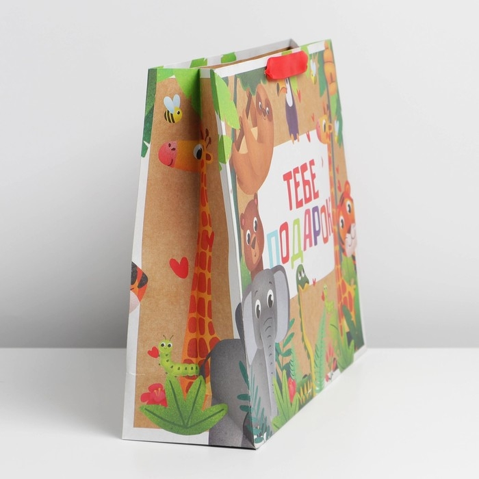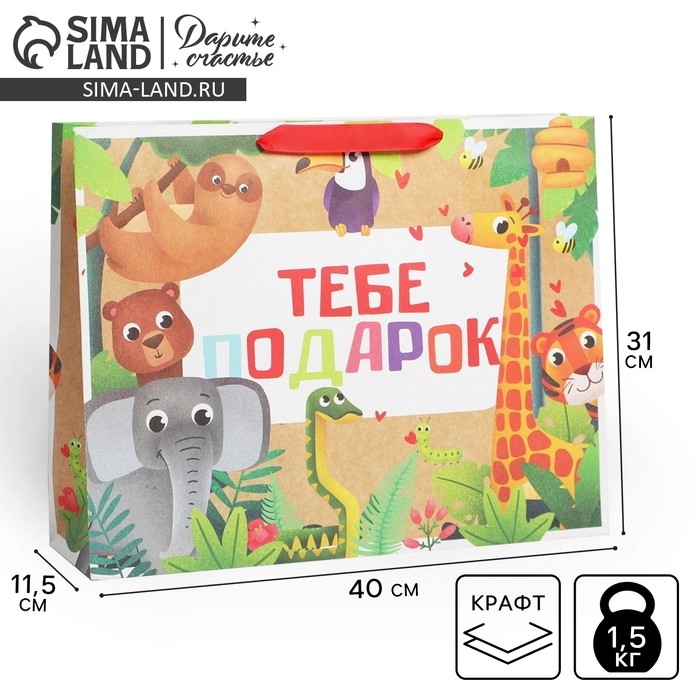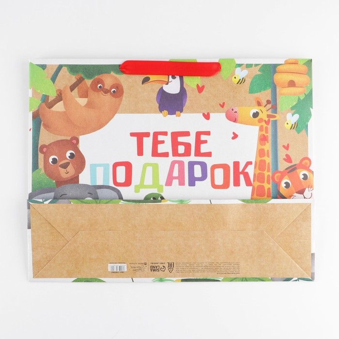 Пакет подарочный крафтовый горизонтальный, упаковка, «Тебе подарок», L 40 х 31 х 11,5 см