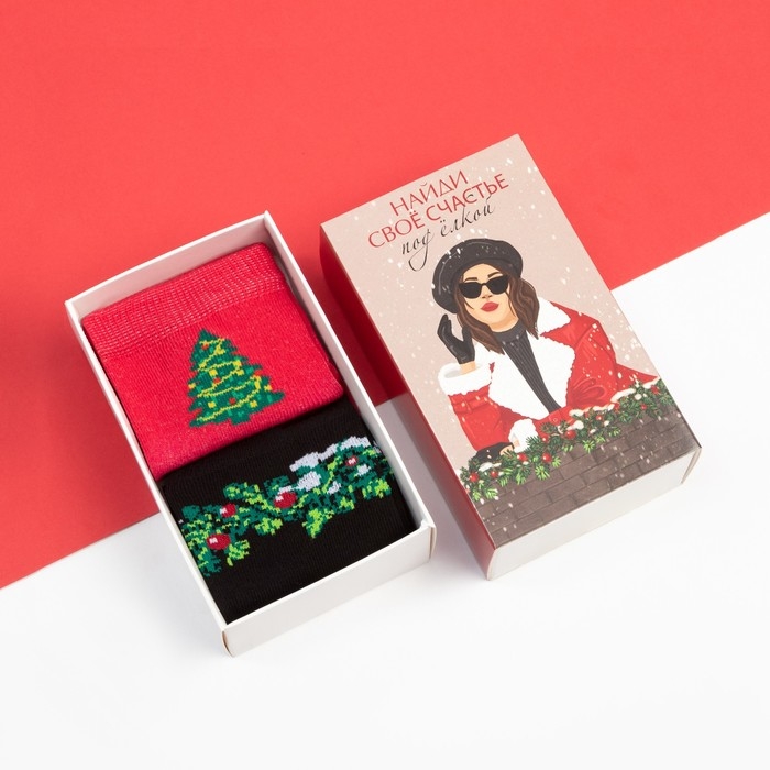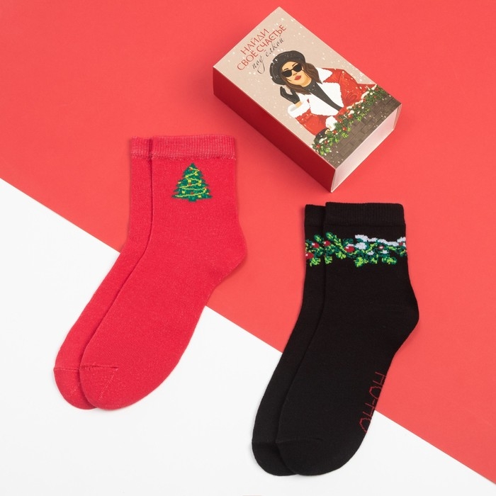 Набор новогодних женских носков KAFTAN "Счастье" размер 36-40 (23-25 см), 2 пары