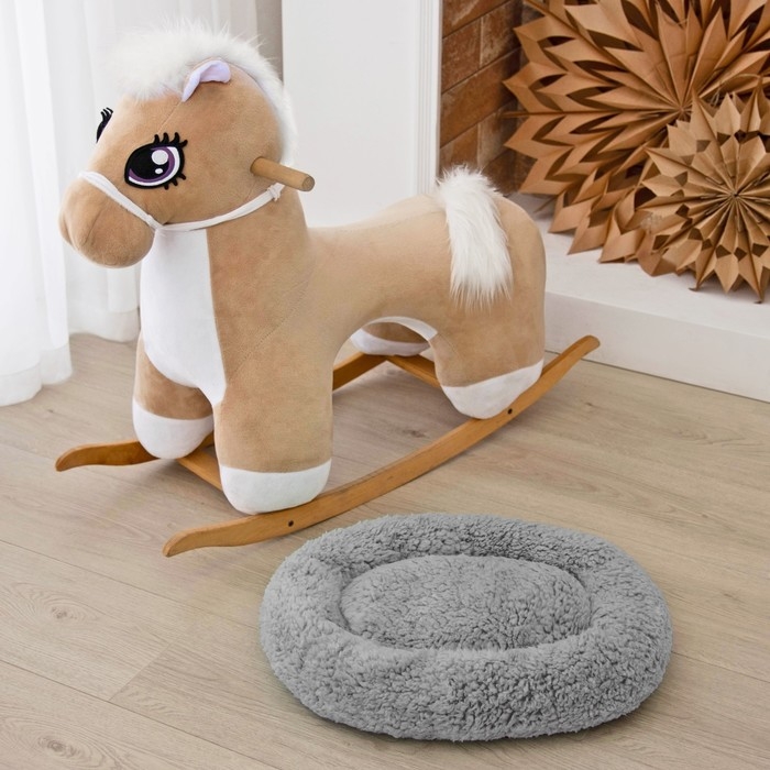 Лежак с подушкой мех, сатин, периотек, 40 х 40 х 16 см, серый