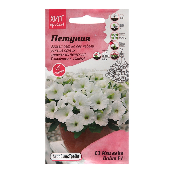 Знаменитый ампельный гибрид многоцветковой петунии, удивляющий своим обильным цветением от американской компании PanAmerican Seed. Характеризуется длительным периодом цветения и устойчивостью к неблагоприятным условиям. Дословно название серии переводится, как «легкая волна», это действительно так же красиво - целью селекции было создание легкого в уходе и хорошо растущего в условиях короткого светового дня растения. Ниспадающие плети покрыты множеством удивительных миниатюрных цветов. Данная серия наращивает массу растения сначала "куполом", достигая 25-38 см в ширину и диаметром 15-30 см, формируя в последствии плети до 1 метра, обильно усыпанные крупными цветками. Цветение обильное, длится с июня по октябрь. Этот уникальный гибрид позволяет создать изысканные и неповторимые композиции при оформлении клумб, рабаток, вазонов и кашпо. Также петунию данной серии смело можно сажать в балконные ящики. Агротехника: Семена покрыты оболочкой! Петуния – мелкосемянная культура, требовательная к условиям выращивания. Посев на рассаду в феврале-марте. Гранулы располагают на поверхности субстрата, не засыпая их почвой, а лишь слегка прижимают и накрывают стеклом или пленкой. Для прорастания семян необходимо хорошее освещение и температура 20-24˚С. Полив производят из опрыскивателя. Всходы появляются на 10-15 день. После появления первого настоящего листа всходы проветривают, периодически снимая стекло и убирая конденсат влаги. Температуру постепенно снижают до 14-16˚С и следят, чтобы не было переувлажнения субстрата. Закаленную рассаду высаживают в грунт по схеме 25×30 см. В дальнейшем уход заключается в рыхлении, поливе и подкормах. Штрих-код –