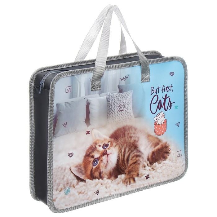 Папка с ручками пластиковая А4 Calligrata "Котёнок", 32,2х25,6х7 см,