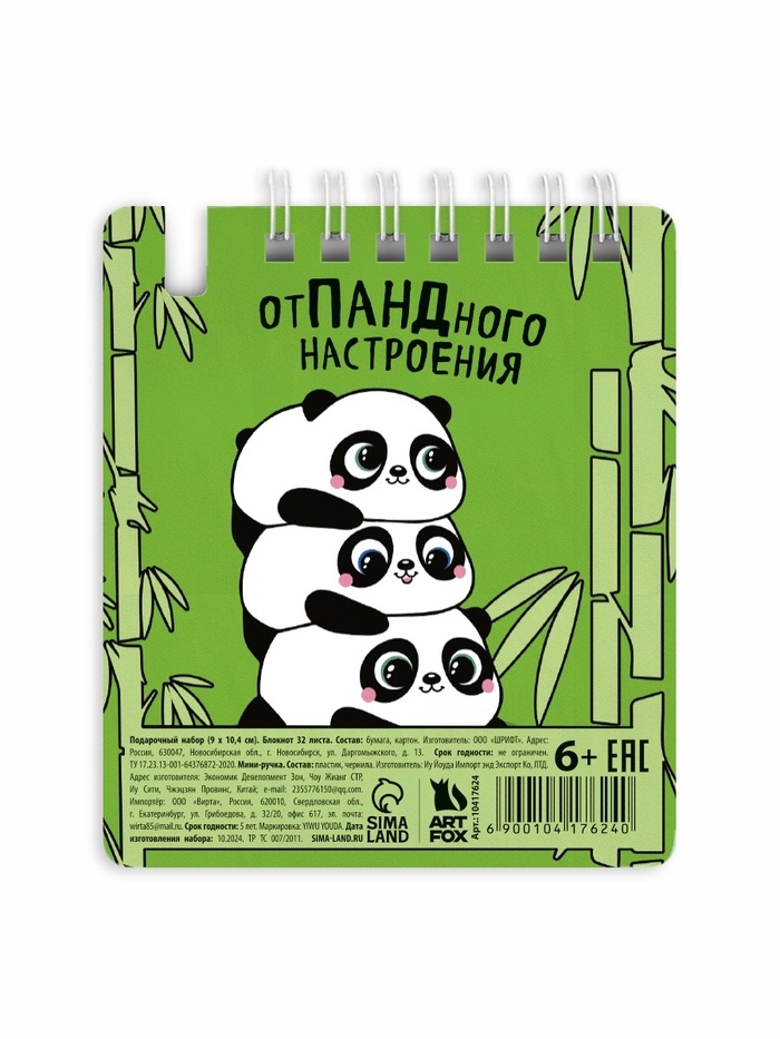 Блокнот 9 х 10,4 см и мини-ручка "Панда"