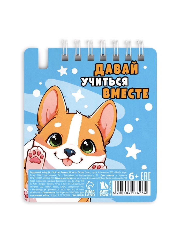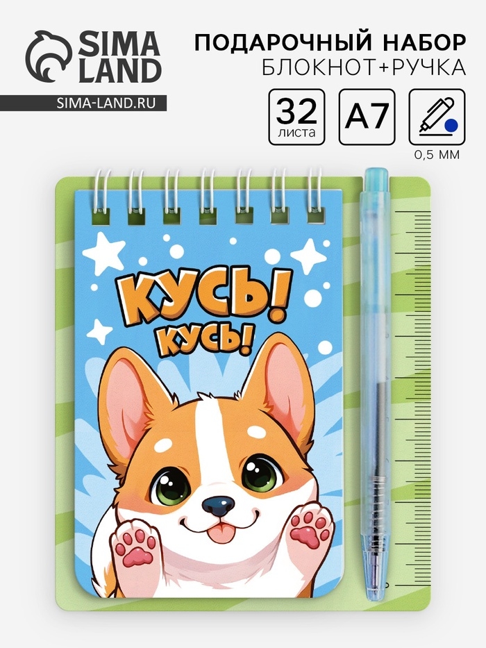 Блокнот 9 х 10,4 см и мини-ручка "Корги"