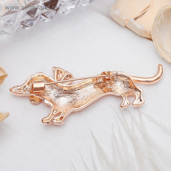 Брошь «Собака» такса с бантом, цвет красный в золоте