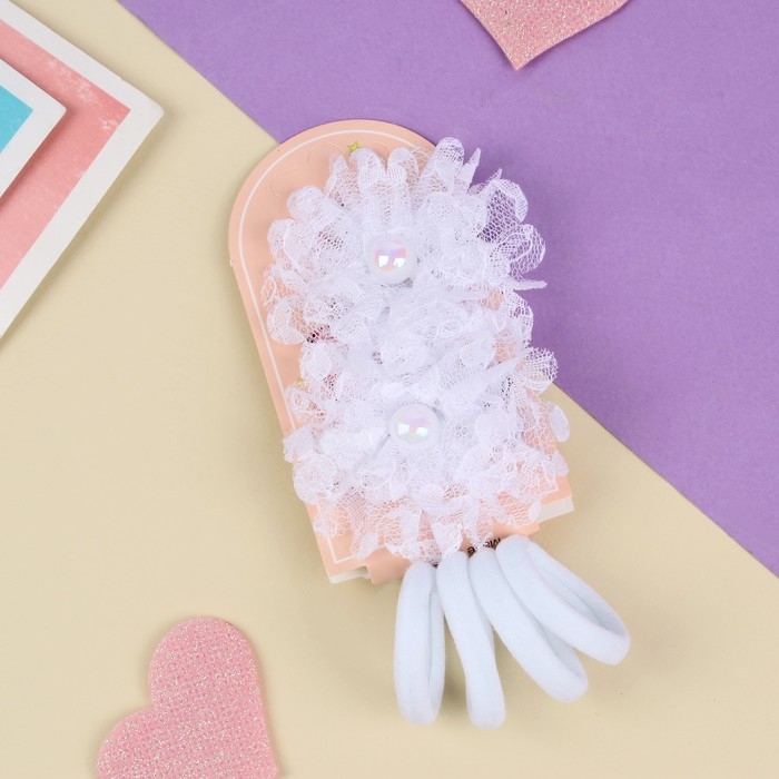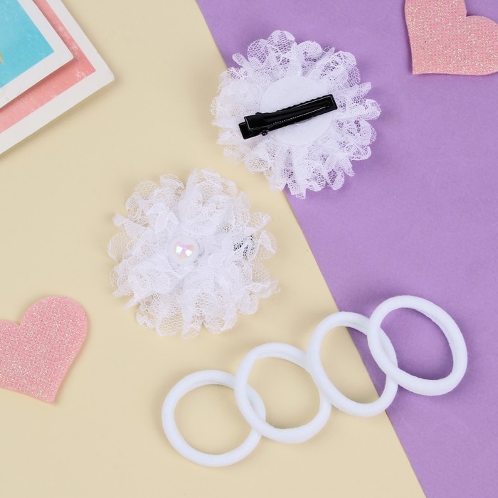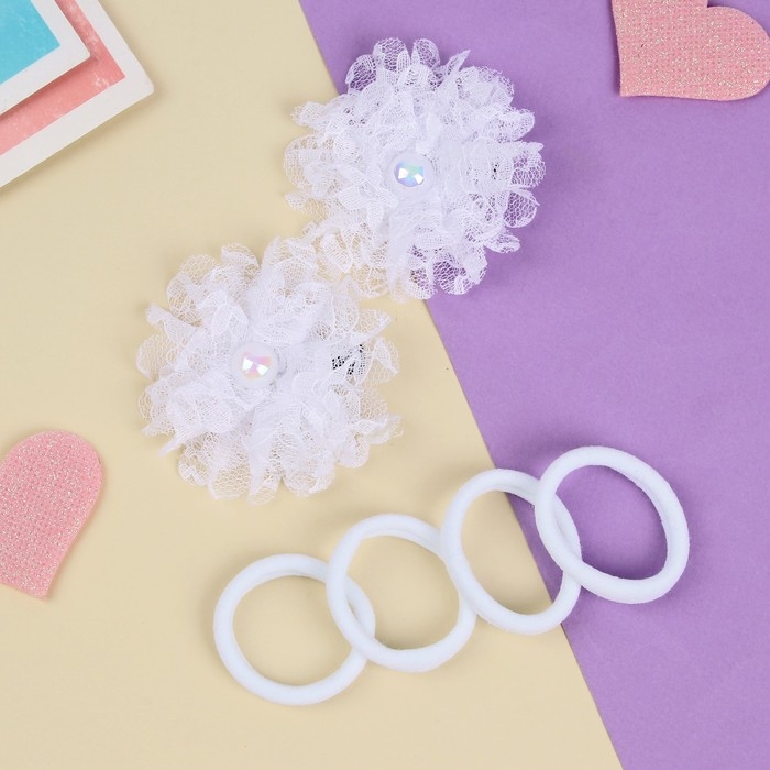 Набор для волос "Милашка" (2 зажима, 4 резинки) кружева, белый