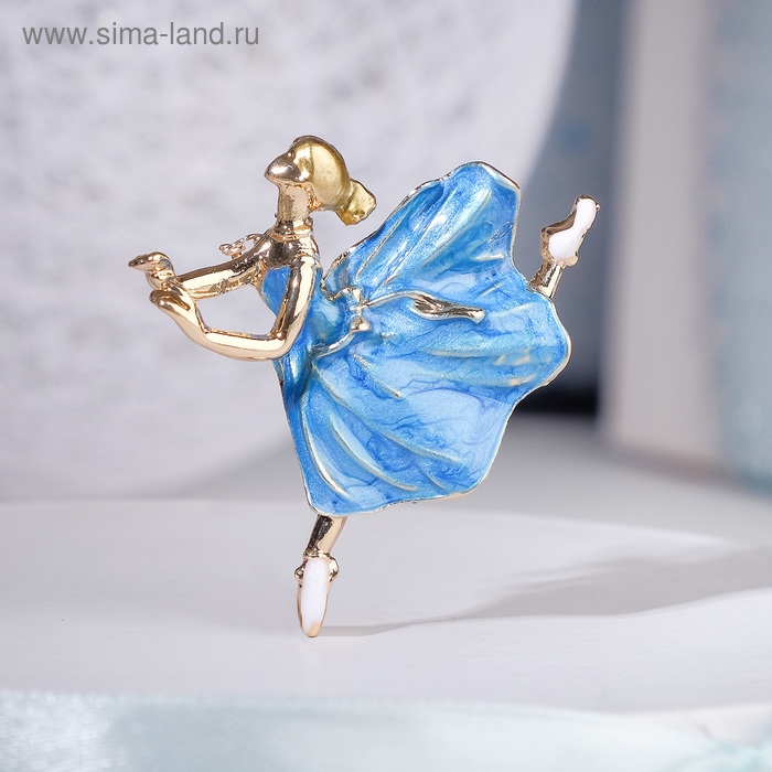 Брошь «Балерина» невесомость, цвет голубой в золоте
